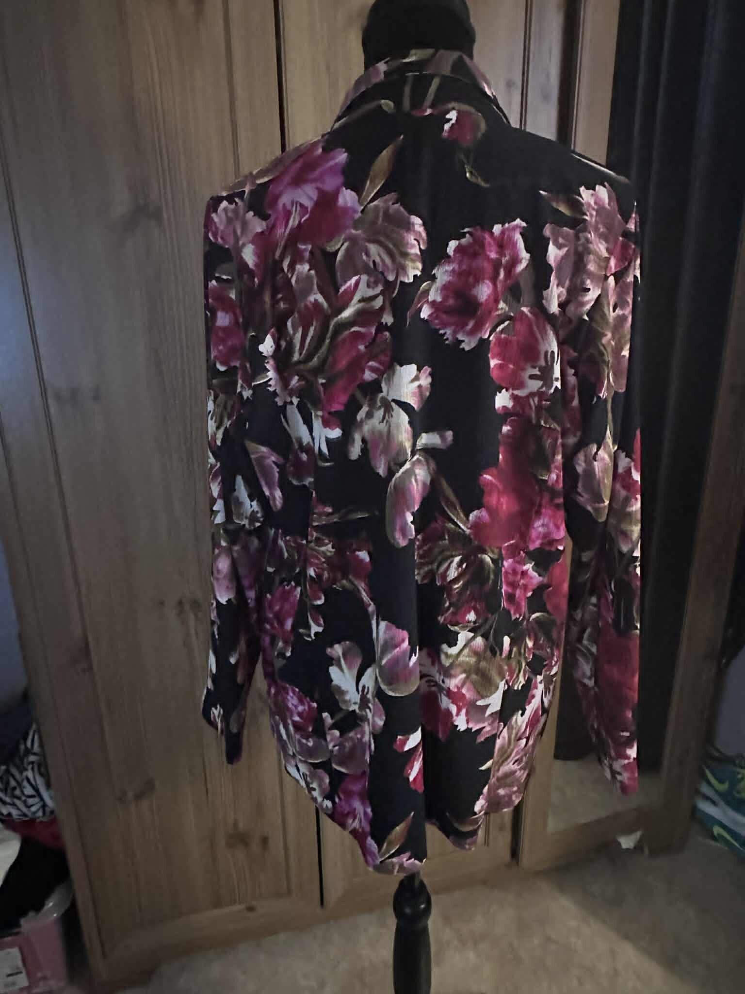 Blommig kavaj från Zhensi i strl M (som 46/48) med svart botten, inga axelvaddar och knäpps med 2 knappar